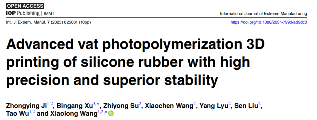 中國科學(xué)院蘭州化學(xué)理學(xué)科研所王曉龍科研員與香港理工大學(xué)徐賓剛教授在《InternationalJournal of Extreme Manufacturing》期刊發(fā)布文案“Advanced vat photopolymerization 3D printing of silicone rubber with high precision and superior stability”,硅橡膠(SR)是一種多功能材料,廣泛用于各樣高級功能應(yīng)用,例如軟致動器和設(shè)備人、柔性電子設(shè)備和醫(yī)療設(shè)備。然而,大都數(shù)SR成型辦法依賴于傳統(tǒng)的熱處理或直接墨水書寫3D (3D)打印。這些辦法有害于制造繁雜的結(jié)構(gòu),并存在時間效率低、精度差和需要多個過程等挑戰(zhàn),極重地限制了 SR 的應(yīng)用。在這項科研中,科研團(tuán)隊研發(fā)了一種基于SR的墨水,適用于運用多硫醇單體進(jìn)行還原光聚合3D打印。這種油墨能夠一步制造出擁有微米級高打印分辨率的繁雜結(jié)構(gòu),供給出色的機(jī)械強(qiáng)度和卓越的化學(xué)穩(wěn)定性。詳細(xì)來講,優(yōu)化的3D打印SR-20表現(xiàn)出1.96 MPa的拉伸應(yīng)力、487.9%的斷裂伸長率和225.4 kPa的彈性模量。另外,3D打印的SR樣品能夠承受各樣溶劑,并承受?50 °C至180 °C的溫度范圍,表現(xiàn)出卓越的穩(wěn)定性。做為該應(yīng)用的演示,科研團(tuán)隊利用這項技術(shù)成功地一步制造了一系列基于SR的軟氣動執(zhí)行器和抓手,首次實現(xiàn)了自由組裝。這種紫外線固化SR擁有高打印分辨率和卓越的穩(wěn)定性,在加強(qiáng)3D打印在軟致動器、設(shè)備人、柔性電子和醫(yī)療設(shè)備中的應(yīng)用能力方面擁有巨大潛能。