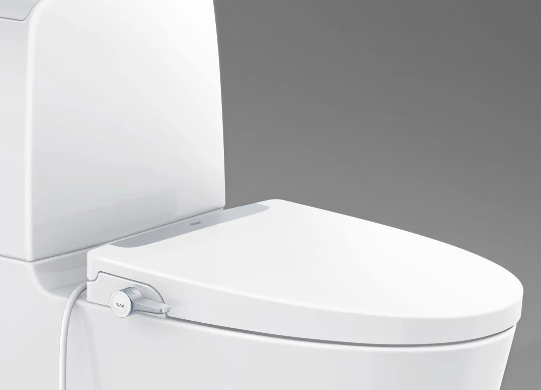 04、S400 手動坐浴盆設(shè)計:INAX曲線和直線的和諧融合,S400手動坐浴盆融合了人類和建筑元素,表現(xiàn)了 INAX 的“人文”設(shè)計理念。做為轉(zhuǎn)換套件,該坐浴盆與市場上大都數(shù) INAX 抽水馬桶高度兼容。它不需要電源,安裝方便,帶有一個快速釋放按鈕和一個隱匿的防漏水入口。該坐浴盆還擁有用于女性洗滌的第二個噴嘴,由符合人體工程學的側(cè)桿掌控。